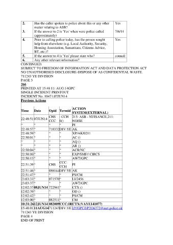 2. Has the caller spoken to police about this or any other Yes