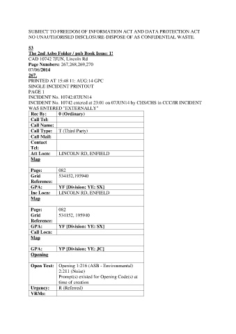 INCIDENT No. 10742 entered at 23:01 on 07JUN14 by CHS/CHS in CCC/IR INCIDENT