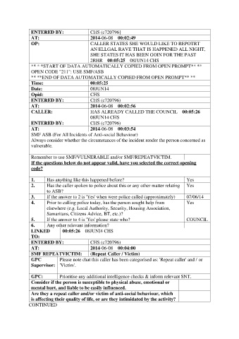 2. Has the caller spoken to police about this or any other matter relating Yes