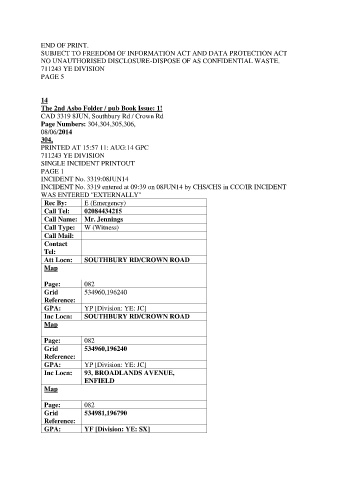 SINGLE INCIDENT PRINTOUT