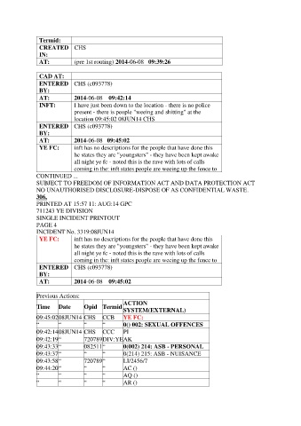 09:43:37 “ “ “ 0(214) 215: ASB - NUISANCE