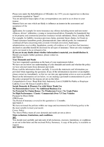 as set out in this letter and the enclosed Policy Summary. A copy of the policy is available on