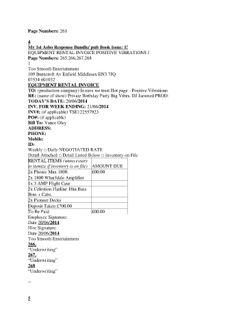EQUIPMENT RENTAL INVOICE POSITIVE VIBRATIONS /