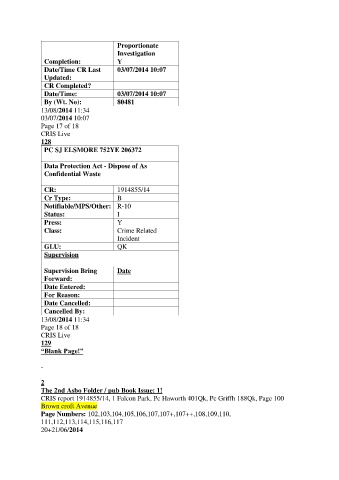 CRIS report 1914855/14, 1 Falcon Park, Pc Haworth 401Qk, Pc Griffh 188Qk, Page 100