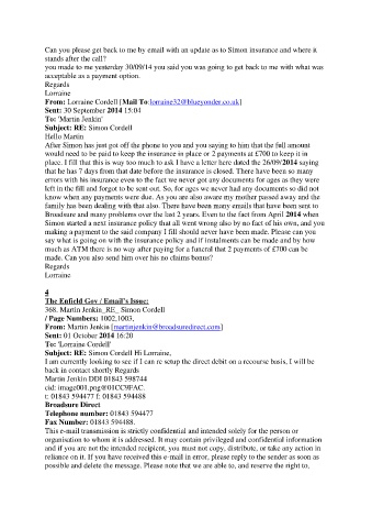 know when any payments were due. As you are also aware my mother passed away and the