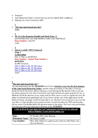 • Asbo Injunction Order is said to have got served without Bail conditions!