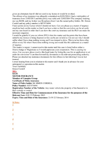 Please see attached my insurance documents for this offence in fact showing I was in fact
