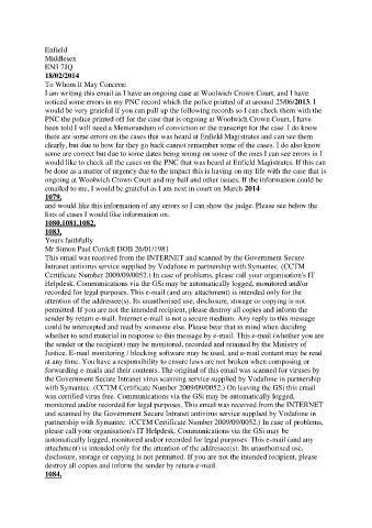 PNC the police printed off for the case that is ongoing at Woolwich Crown Court, I have