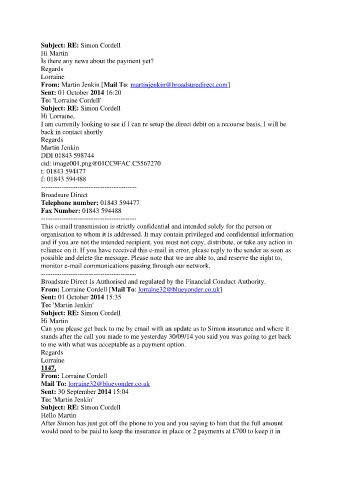 Can you please get back to me by email with an update as to Simon insurance and where it