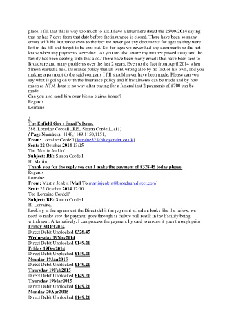 know when any payments were due. As you are also aware my mother passed away and the