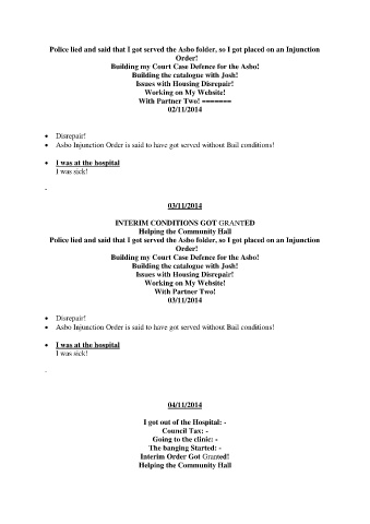 • Asbo Injunction Order is said to have got served without Bail conditions!