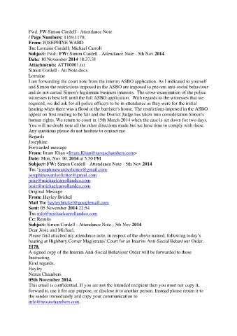 Subject: Simon Cordell - Attendance Note - 5th Nov 2014
