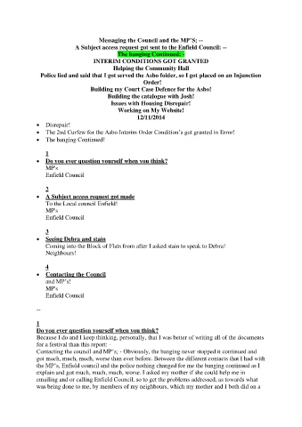 the MP’s, Enfield council and the police nothing changed for me the banging continued as I