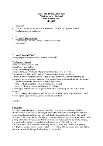 The occupiers of 117 and 113 and 111 Continued to victimizing me by: --