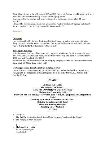 Stain banged on the kitchen wall again with intent of victimising me on a full 24-hour