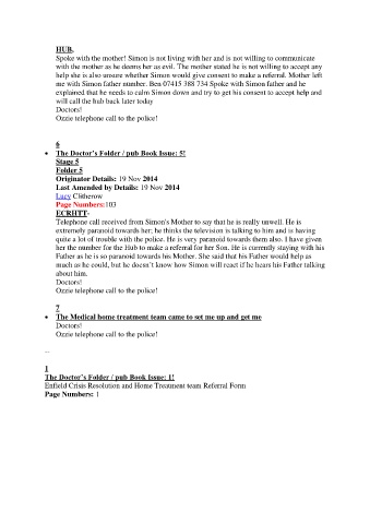 Telephone call received from Simon's Mother to say that he is really unwell. He is