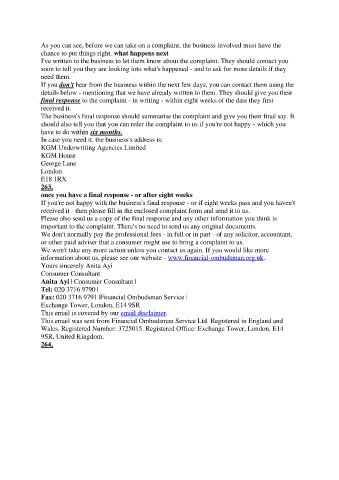 should also tell you that you can refer the complaint to us if you're not happy - which you
