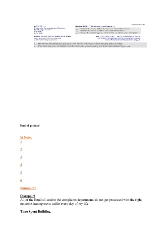 End of picture! Si Note: 1 2 3 4 5 6 Summary! Disrepair! All of the Emails I send to the complaints departments do not get processed with the right outcome leaving me to suffer every day of my life! Time Spent Building.