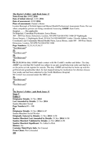 On 21.11.14 the duty AMHP made contact with Mr Cordell’s mother and father. The duty