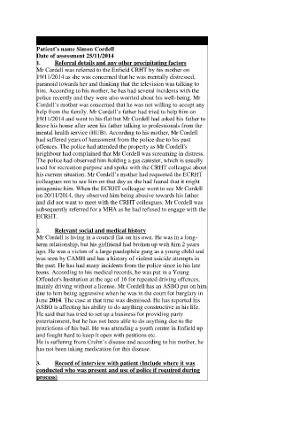 Mr Cordell was referred to the Enfield CRHT by his mother on