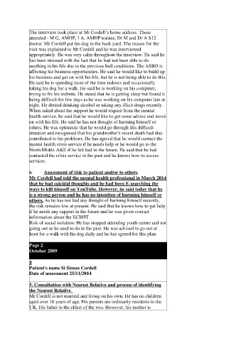 visit was explained to Mr Cordell and he was interviewed