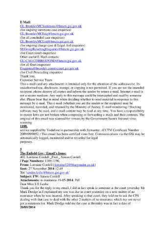 got a summons for. Mark Dredge told me the case at Bromley was in fact a date of