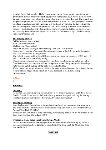 I spent time and resources costing expenditure with my mother also building my defence