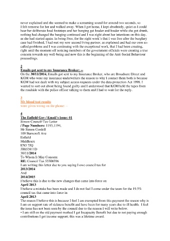 as she had started again. In being Free, for the eight week’s that I was free after the burglary