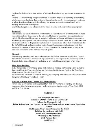 continued with there be-crazed actions of attempted murder of my person and harassment to