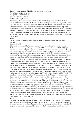 I am writing this email due to a letter from the court that my son Simon Cordell DOB