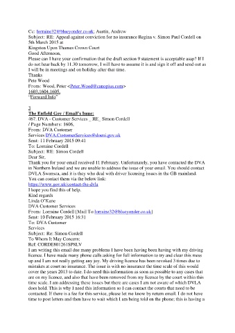 Subject: RE: Appeal against conviction for no insurance Regina v. Simon Paul Cordell on