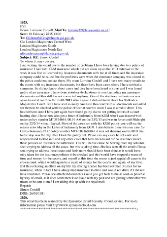 hearing date. I have now also got a letter of Indemnity from KGM who I was insured with