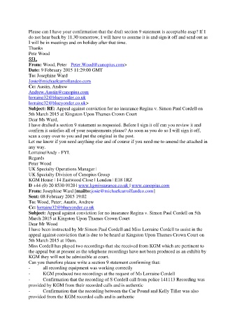 Subject: RE: Appeal against conviction for no insurance Regina v. Simon Paul Cordell on