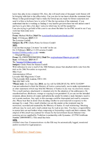 With reference to your e-mail of the 10th February please find attached clerks note from the