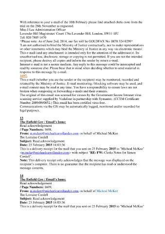 With reference to your e-mail of the 10th February please find attached clerks note from the