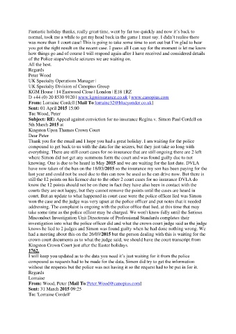 Subject: RE: Appeal against conviction for no insurance Regina v. Simon Paul Cordell on