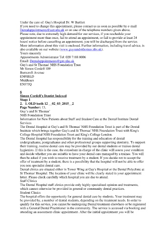 Information for New Patients about Staff and Student Care at the Dental Institute Dental