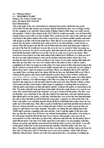 and unstable. I believe this started on the 22/11/2014 it would seem police was at Simon Flat