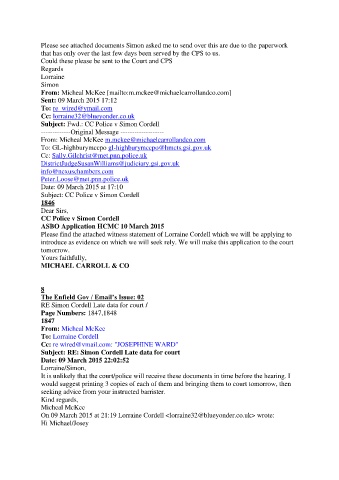 RE Simon Cordell Late data for court /