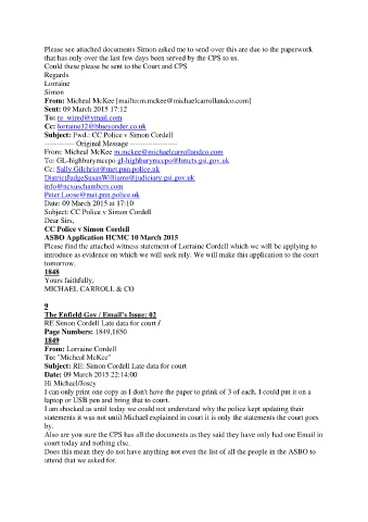 RE Simon Cordell Late data for court /