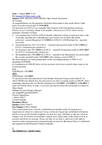 • 2nd instalment due 19/11 for £149.21 – rejected Card payment made on 08/12/2014 for