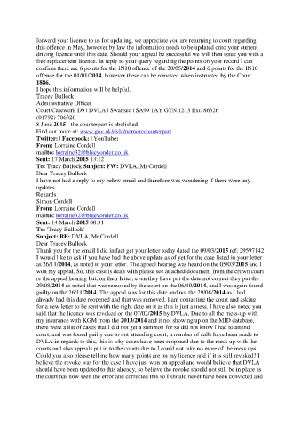 forward your licence to us for updating, we appreciate you are returning to court regarding