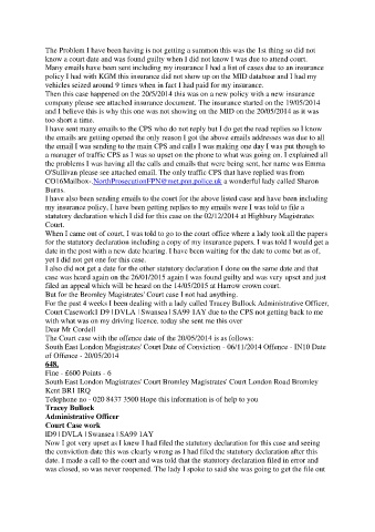 Court Casework1 D9 | DVLA | Swansea | SA99 1AY due to the CPS not getting back to me
