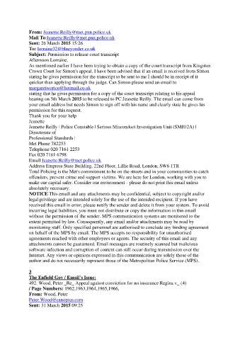 hearing on 5th March 2015 to be released to PC Jeanette Reilly. The email can come from