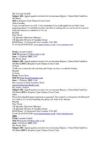 Subject: RE: Appeal against conviction for no insurance Regina v. Simon Paul Cordell on
