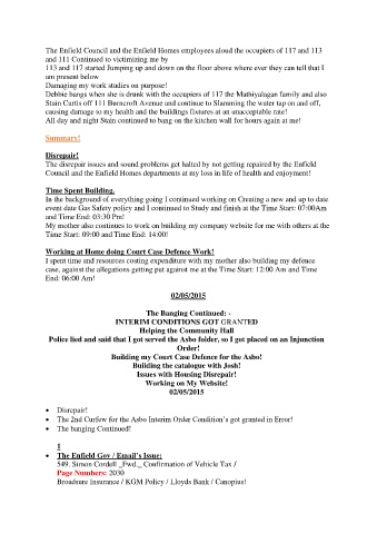 Council and the Enfield Homes departments at my loss in life of health and enjoyment!