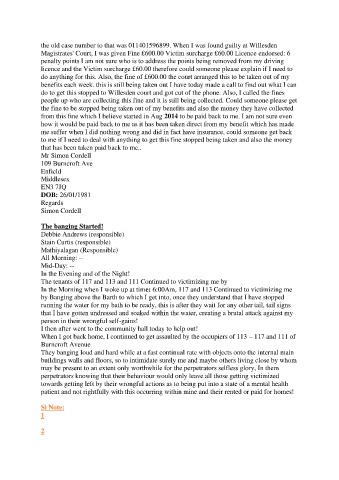 do to get this stopped to Willesden court and got cut of the phone. Also, I called the fines