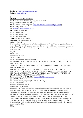 Your email has been forwarded to Willesden Magistrates Court. When an appeal is finished,