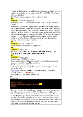 ACTION PLAN PROVIDED TO THE VICTIM AND A COPY