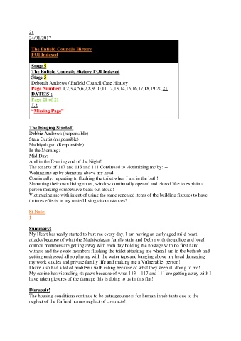 The tenants of 117 and 113 and 111 Continued to victimizing me by: --